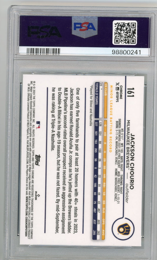 2024 Topps Chrome Jackson Chourio RC #161 - PSA 8 Raywave Brewers
