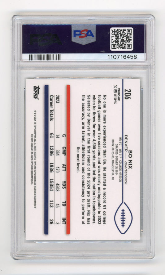 2024 Topps Chrome Bo Nix RC #206 - PSA 10 Broncos
