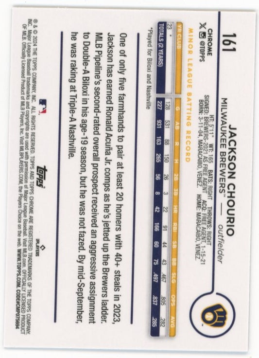 2024 Topps Chrome Jackson Chourio RC #161 - Brewers