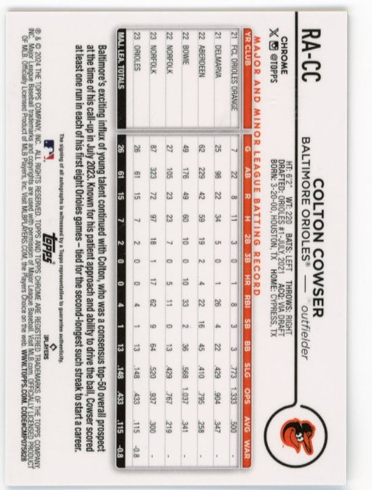 2024 Topps Chrome Colton Cowser RC #RA-CC - Autograph Orioles