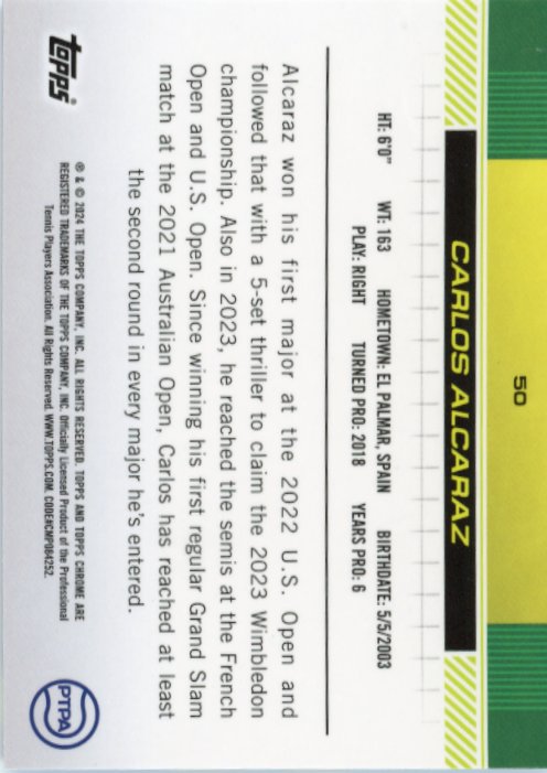 2024 Topps Chrome Carlos Alcaraz #50 - Blue Cracked Ice