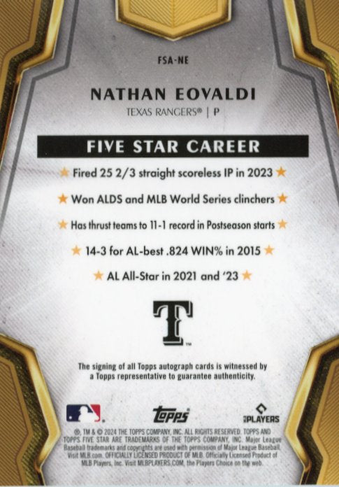 2024 Topps Five Star Nathan Eovaldi #FSA-NE - Autograph Teal #/75 Rangers