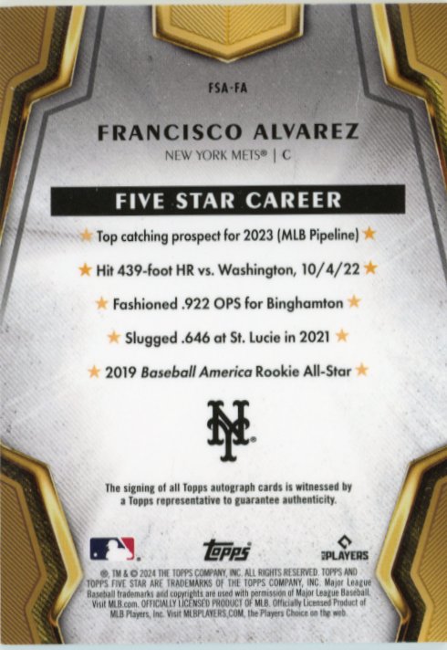 2024 Topps Five Star Francisco Alvarez #FSA-FA - Autograph Teal #/75 Mets