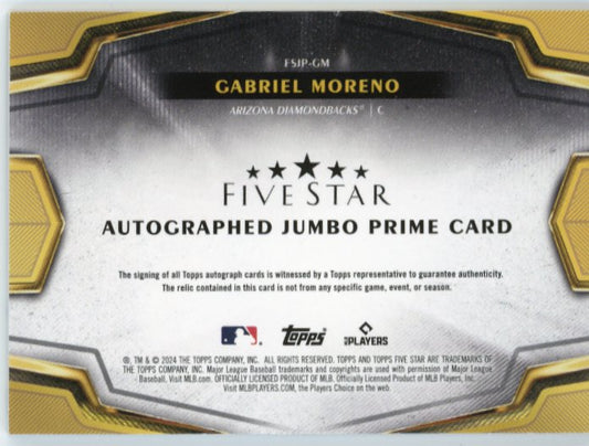 2024 Topps Five Star Gabriel Moreno #FSIP-GM - Autograph Relic #/50 Diamondbacks