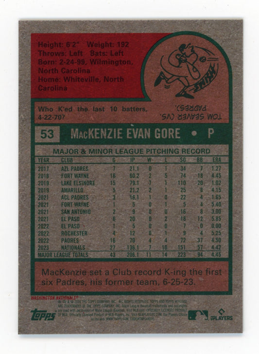 2024 Topps Heritage MacKenzie Gore #53 - Black #/75 Nationals