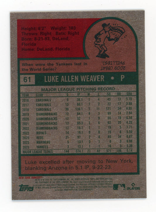 2024 Topps Heritage Luke Weaver #61 - Black #/75 Yankees