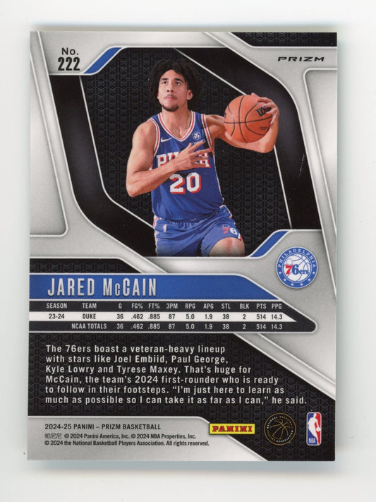 2024-25 Panini Prizm Jared McCain Rookie RC #222 - Green Sixers
