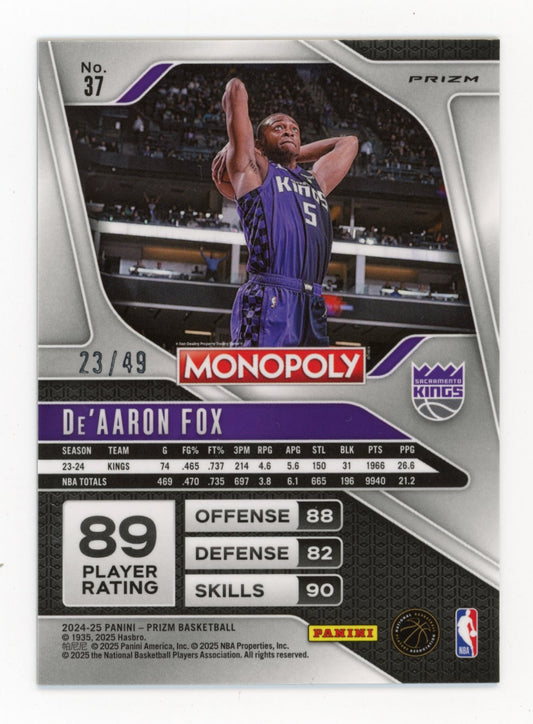 2024-25 Panini Prizm De'Aaron Fox #37 - #/49 Gold Kings