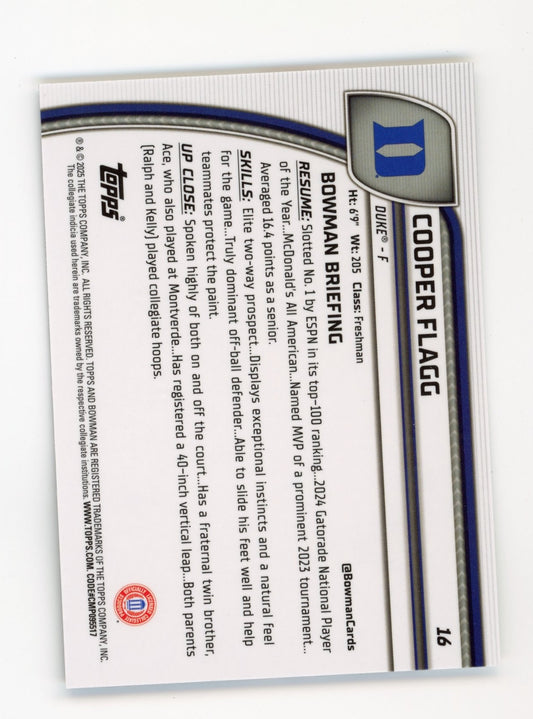 2025 Topps Bowman Chrome University Cooper Flagg Rookie RC #16 - Blue Devlis