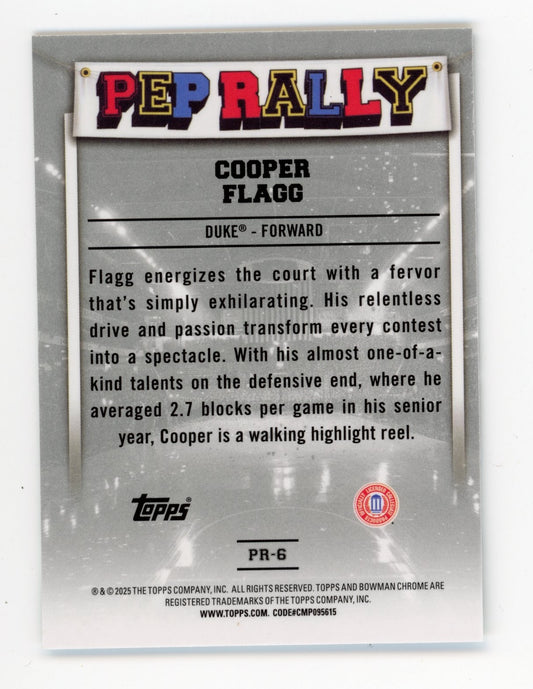 2025 Topps Bowman Chrome University Cooper Flagg #PR-G - Pep Rally Blue Devils
