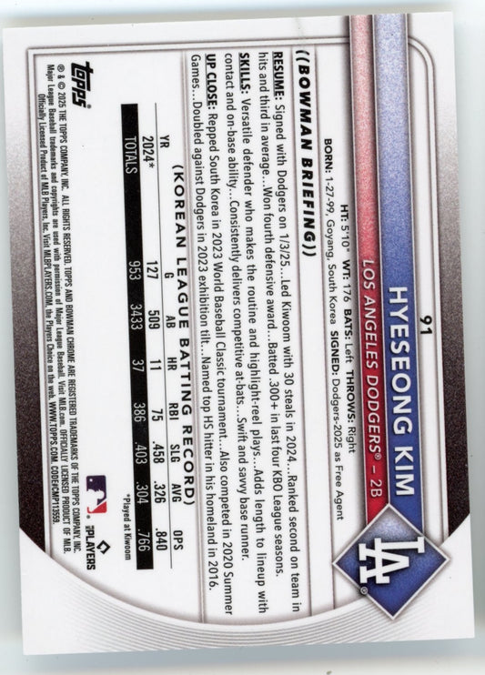 2025 Topps Bowman Chrome Hyeseong Kim RC #91 - Refractor Dodgers