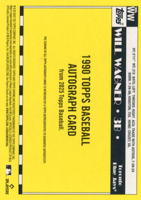 2025 Topps Chrome Will Wagner Blue Mojo #90CA-WW - Autograph #/299 Blue Jays