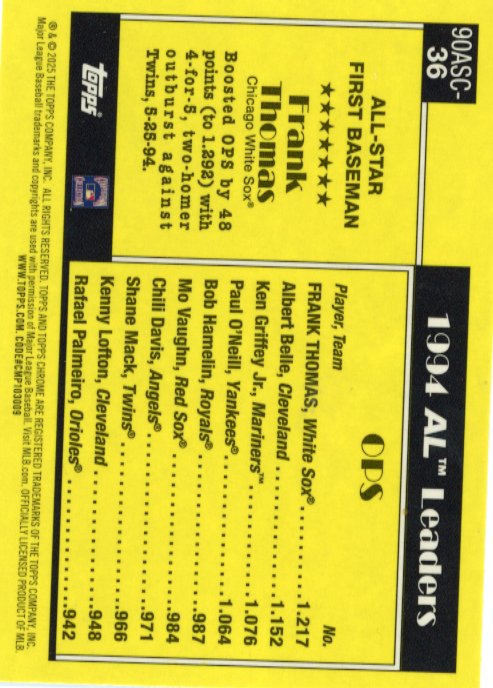 2025 Topps Frank Thomas All Star #90ASC-36 - Mojo Teal #/199 White Sox
