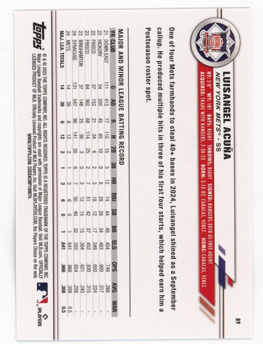 2025 Topps Luisangel Acuna RC #89 - All Star Game Orange #/25 Mets
