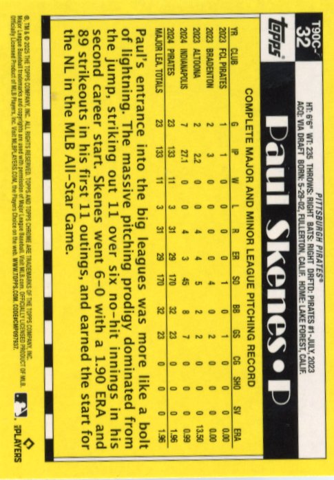 2025 Topps Paul Skenes #T90C-32 - Mojo Pirates