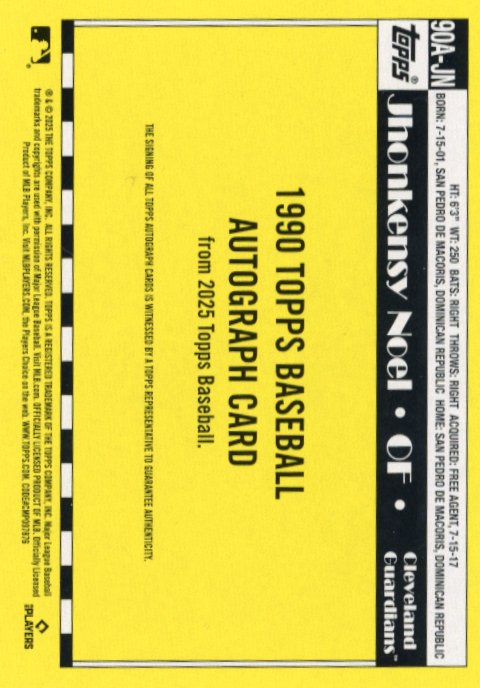 2025 Topps Jhonkensy Noel #90A-JN - 1990 Topps Auto Guardians