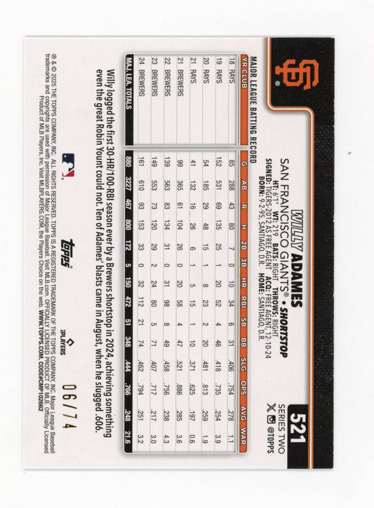 2025 Topps Willy Adames #521 - #/74 Black Giants