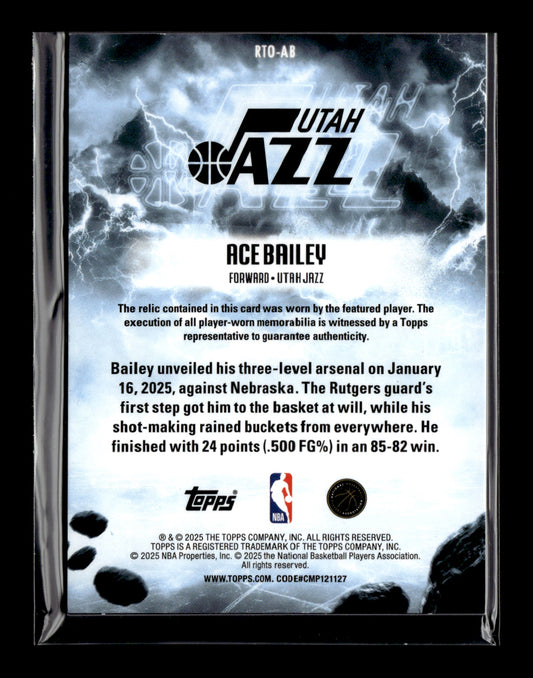2025-26 Topps #RTO-AB Ace Bailey Rise to the Occasion Relics Utah Jazz