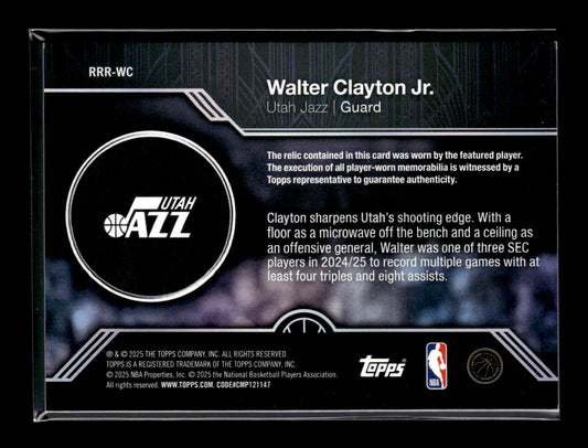 2025-26 Topps #RRR-WC Walter Clayton Jr. Rookie Roundball Remnants Utah Jazz