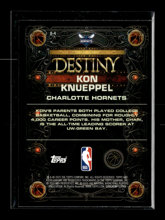 2025-26 Topps Chrome Kon Knueppel #D-4 Destiny Charlotte Hornets