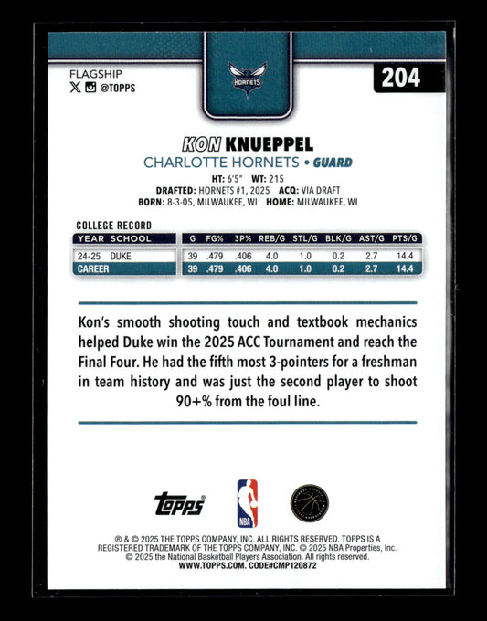 2025-26 Topps #204 Kon Knueppel Rookie Charlotte Hornets