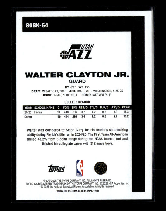 2025-26 Topps #80BK-64 Walter Clayton Jr. 1980-81 Topps Basketball Utah Jazz
