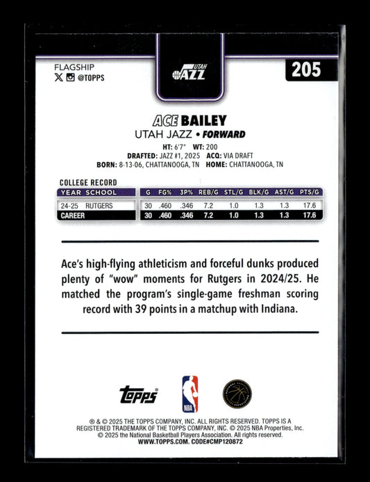 2025-26 Topps #205 Ace Bailey Season Tip Off Rookie Utah Jazz