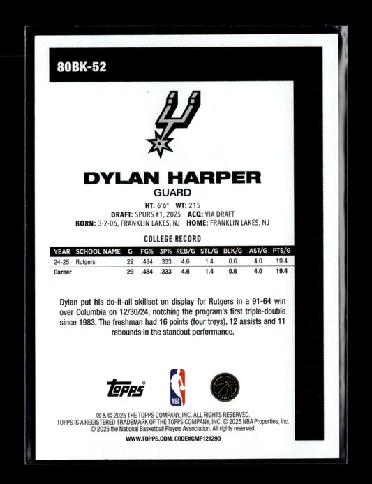 2025-26 Topps #80BK-52 Dylan Harper 1980-81 Topps Basketball San Antonio Spurs