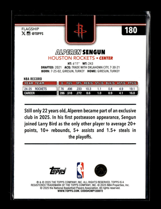 2025-26 Topps #180 Alperen Sengun Blue Rainbow #/150 Houston Rockets