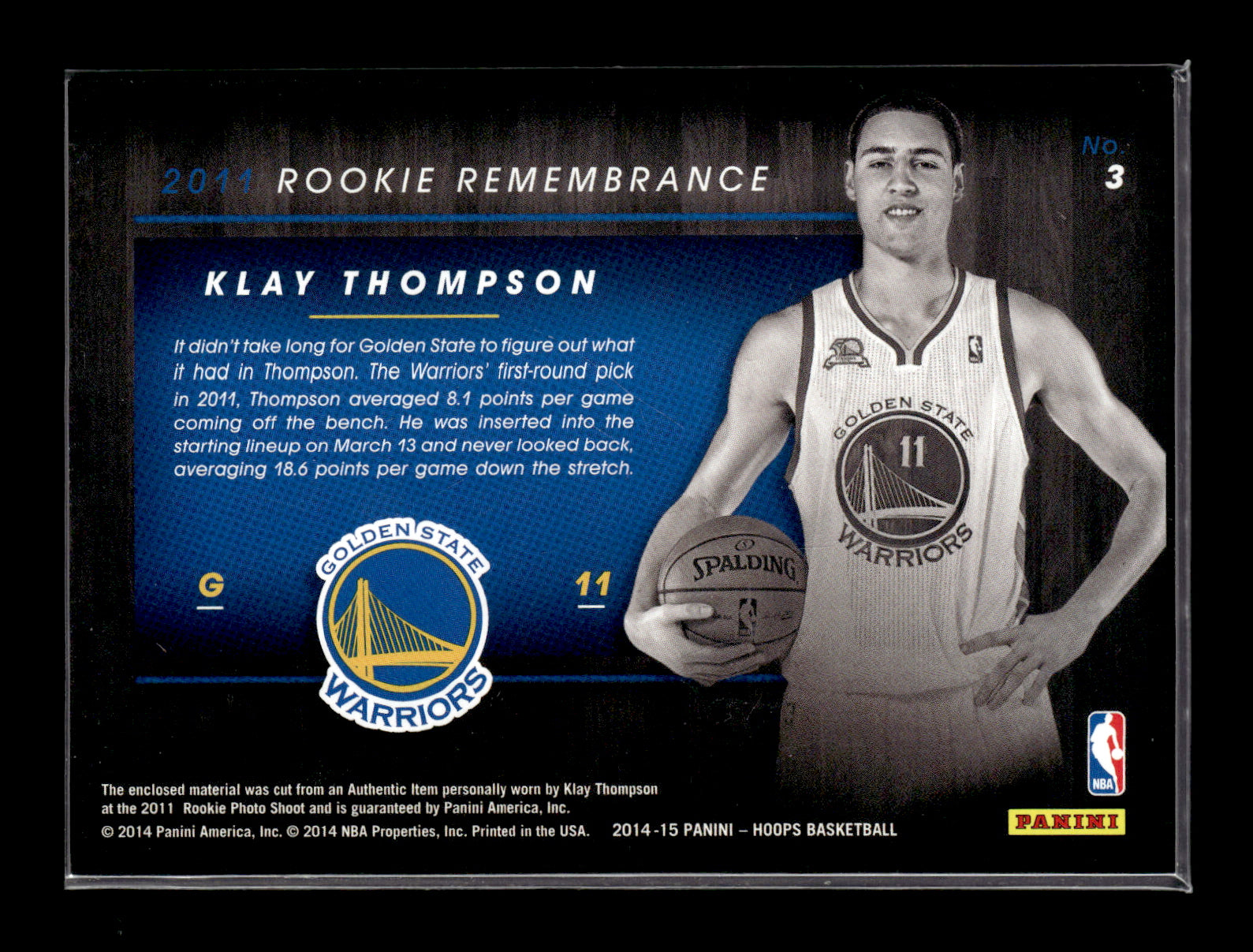 2014 Panini NBA Hoops Klay Thompson #3 - Jersey Patch Warriors