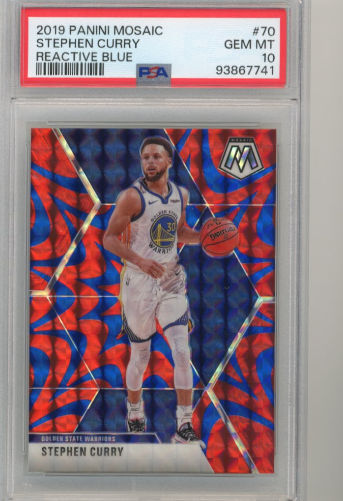 2019/20 Panini Mosaic Stephen Curry #70 - Reactive Blue PSA 10 Warriors