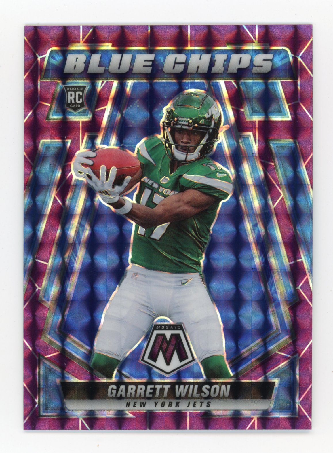 2022 Panini Mosaic Garrett Wilson RC #BC-7 - #/49 Blue Chips Purple Mosaic Jets