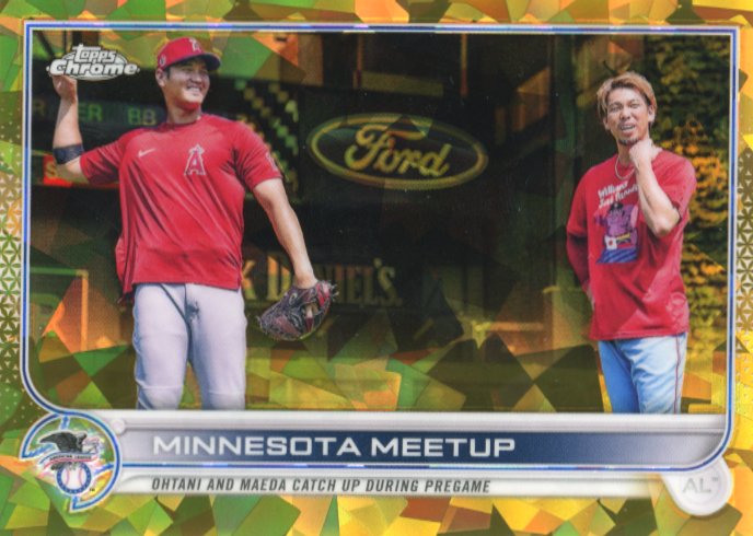 2022 Topps Chrome Sapphire Shohei Ohtani Kenta Maeda Minnesota Meetup #122 - #/50 Gold Cracked Ice Angels Twins
