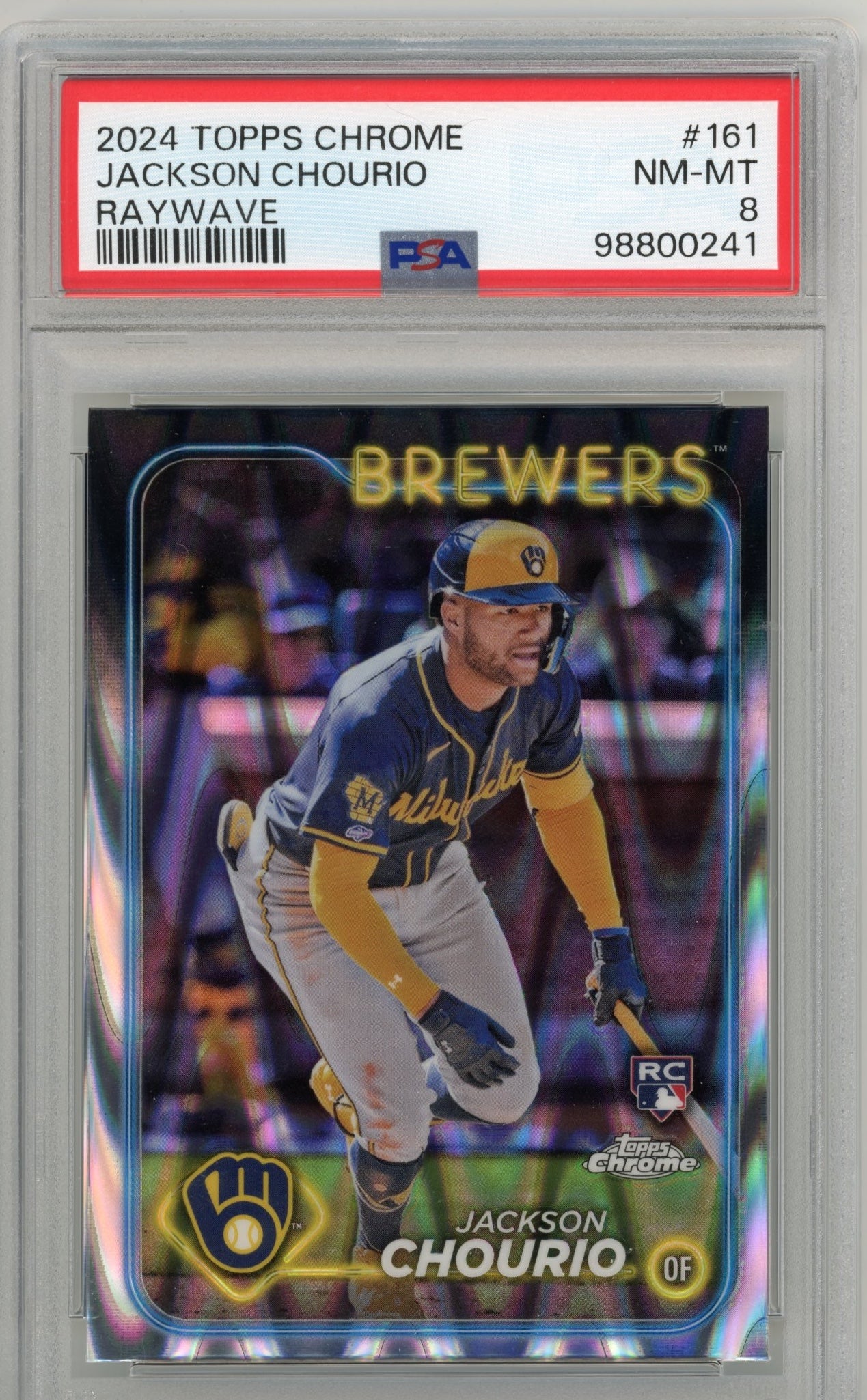 2024 Topps Chrome Jackson Chourio RC #161 - PSA 8 Raywave Brewers