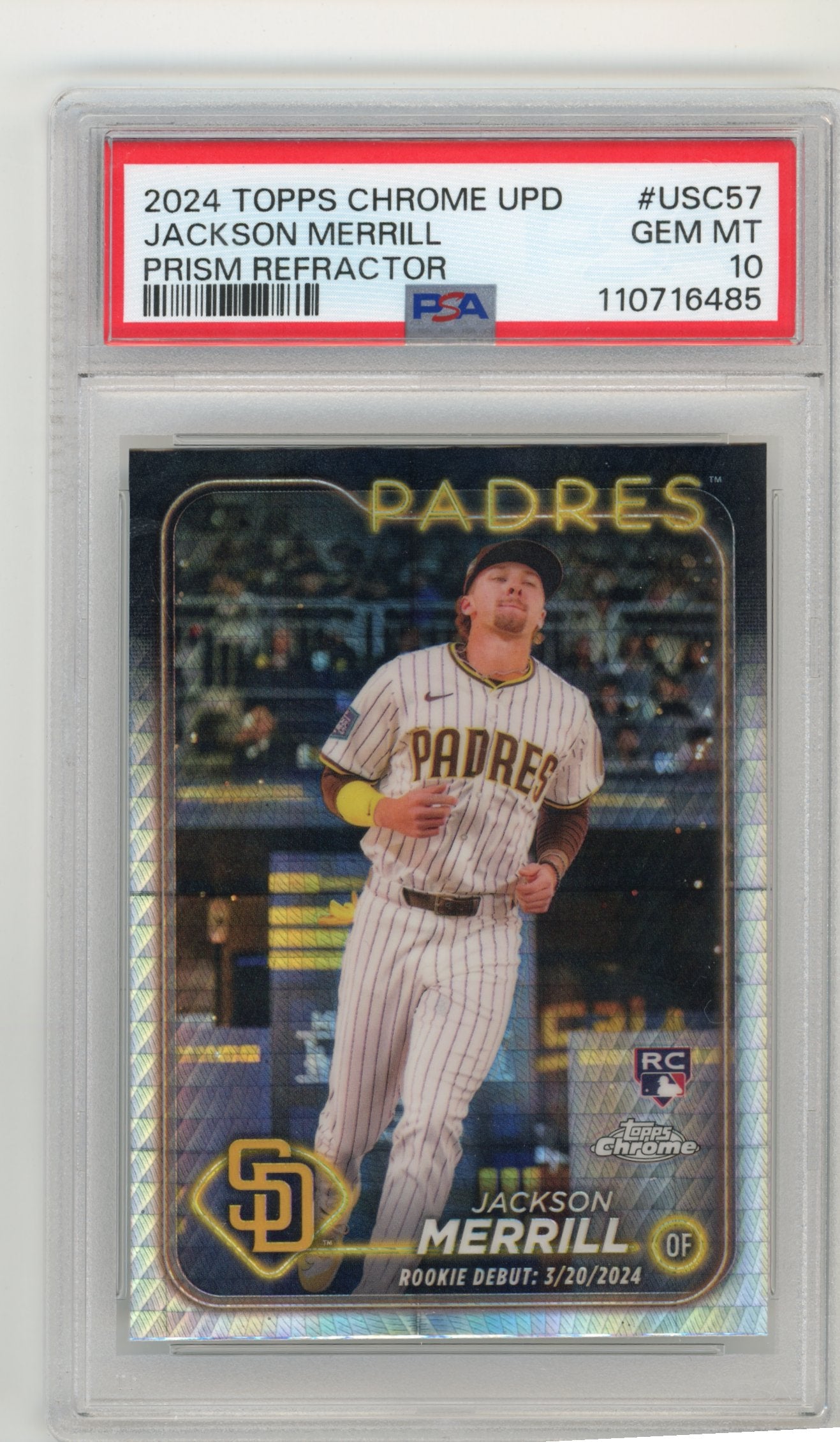 2024 Topps Chrome Jackson Merrill Rookie #USC57 - PSA 10 Prism Refractor Padres