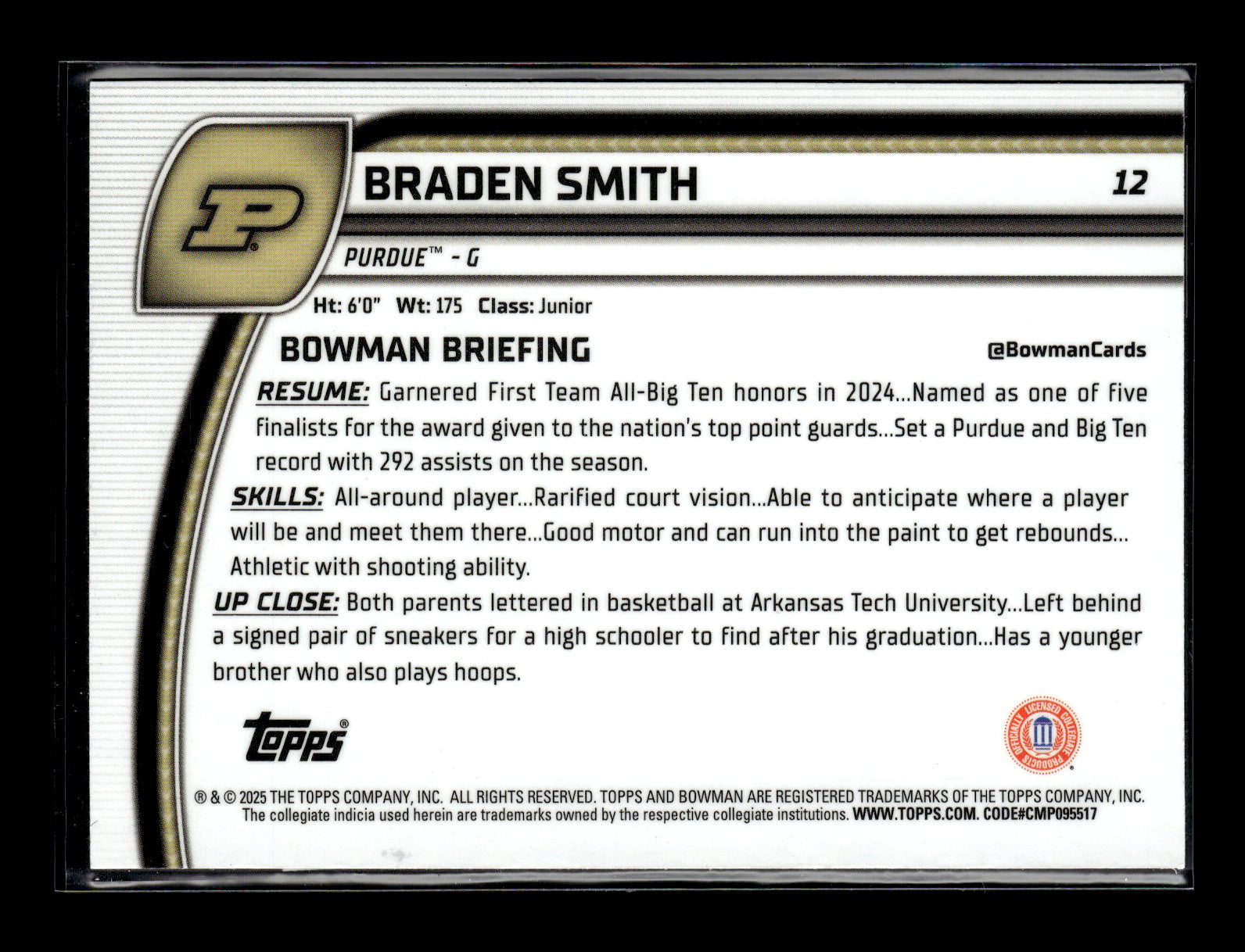 2025 Topps Bowman Chrome Braden Smith #12 - Green #/75 Purdue